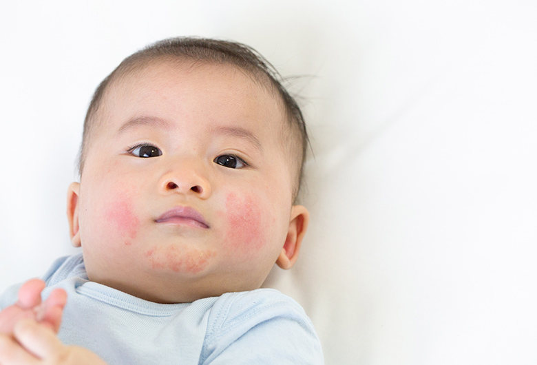 乳児期の皮膚トラブルが続くと、将来、気管支喘息などの気道アレルギーにつながることがある